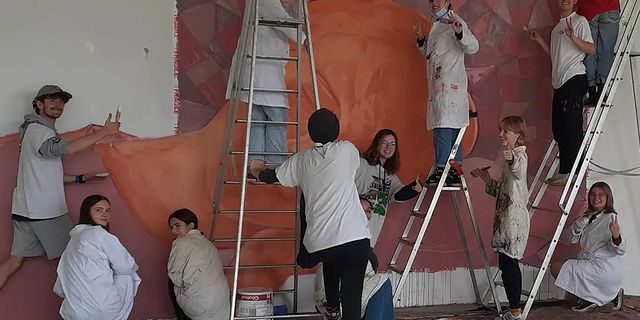 L’université Bretagne Sud a accueilli pendant un mois deux muralistes chiliens dans le cadre de la programmation de l’année Chili en 2022. Des ateliers participatifs ont été proposés sur le mur situé le long du Paquebot. A leur tour, les enseignants d’Espagnol et d’Arts plastiques du lycée Dupuy de Lôme ont lancé un projet in situ : proposer à Juan Pablo Gatica, muraliste chilien, issu du collectif d’artistes Colores in Valparaiso, de peindre avec les élèves de Spécialité Arts plastiques une fresque à l’accueil du lycée.