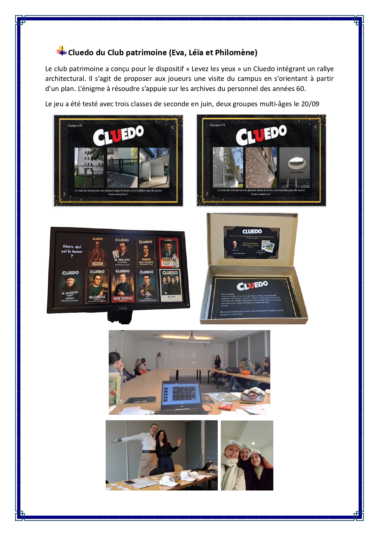 - l’organisation de temps forts, manifestations culturelles ou commémoratives, autour du patrimoine du lycée Dupuy de Lôme ;